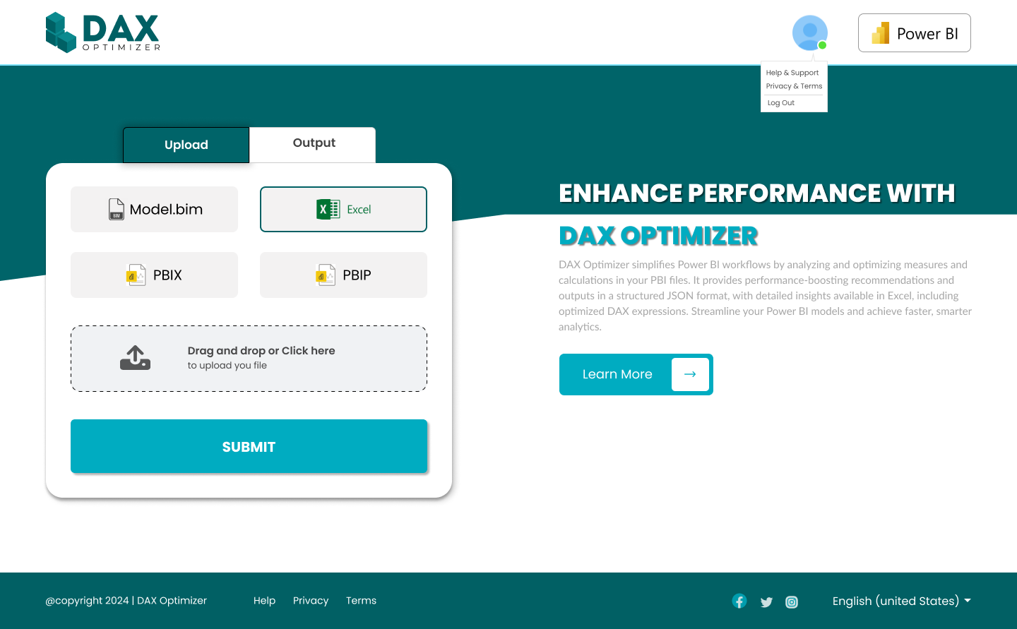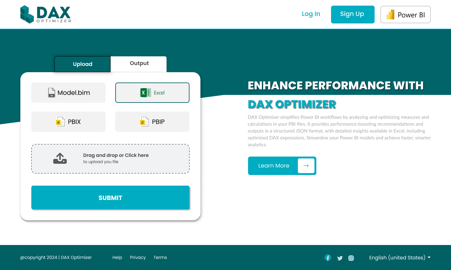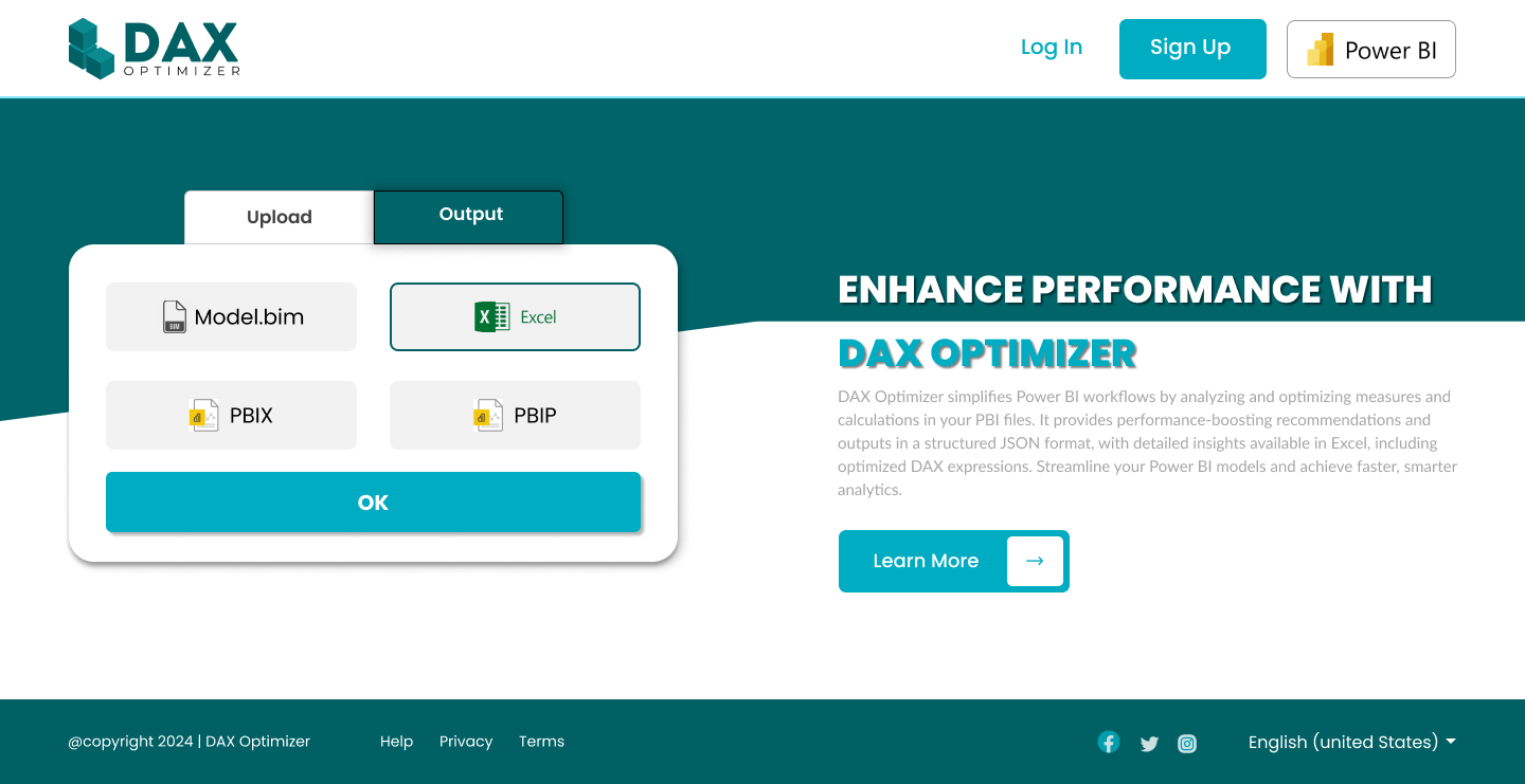 - PBIX - Optimize your Power BI workbooks with direct PBIX file uploads for quicker and more precise improvements.
